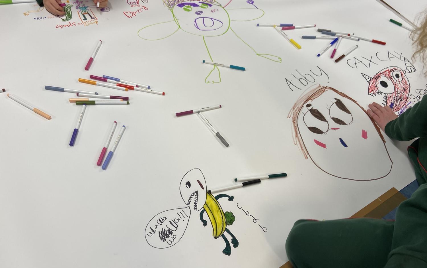 Our team thoroughly enjoyed the experience of encouraging the students with their drawings during the epic Monster Doodle session and were bowled over by the creativity and imagination showcased by the students! The Monster Doodle masterpiece featured monsters of all shapes and sizes, complete with names and brilliant backstories.