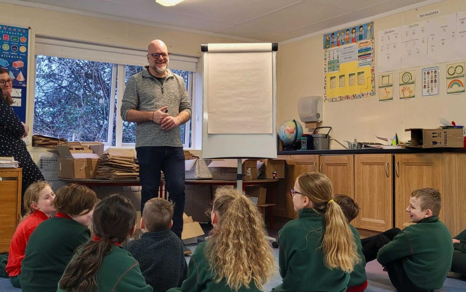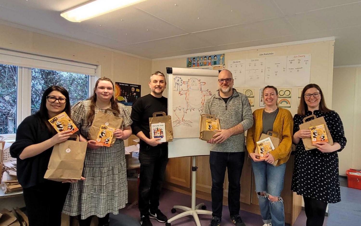 Following the Monster Doodle, each student was then gifted a Bookbag with bookmarks, a Picture This reading guide, and a book for them to keep and bring home. The selected books were a mix of books in the Irish language (as Gaeilge), and illustrated books.
