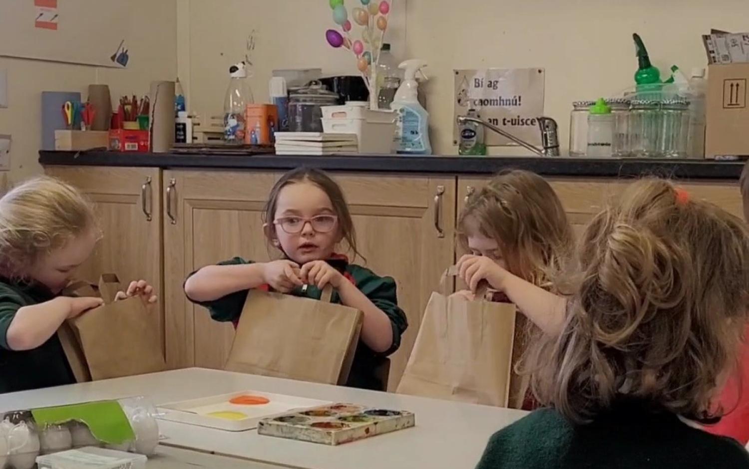 The following day, the school was treated to a visit from Children’s book illustrators and authors Tarsila Krüse and Anna Heussaff, who delivered workshops with the children in their classrooms. Author Sadhbh Devlin will visit the pupils next month, after the Easter break. These artists was selected to work with the school due to their experience hosting activities as Gaeilge, ensuring the delivery of excellent workshops that support the ethos of the Gaelscoil.